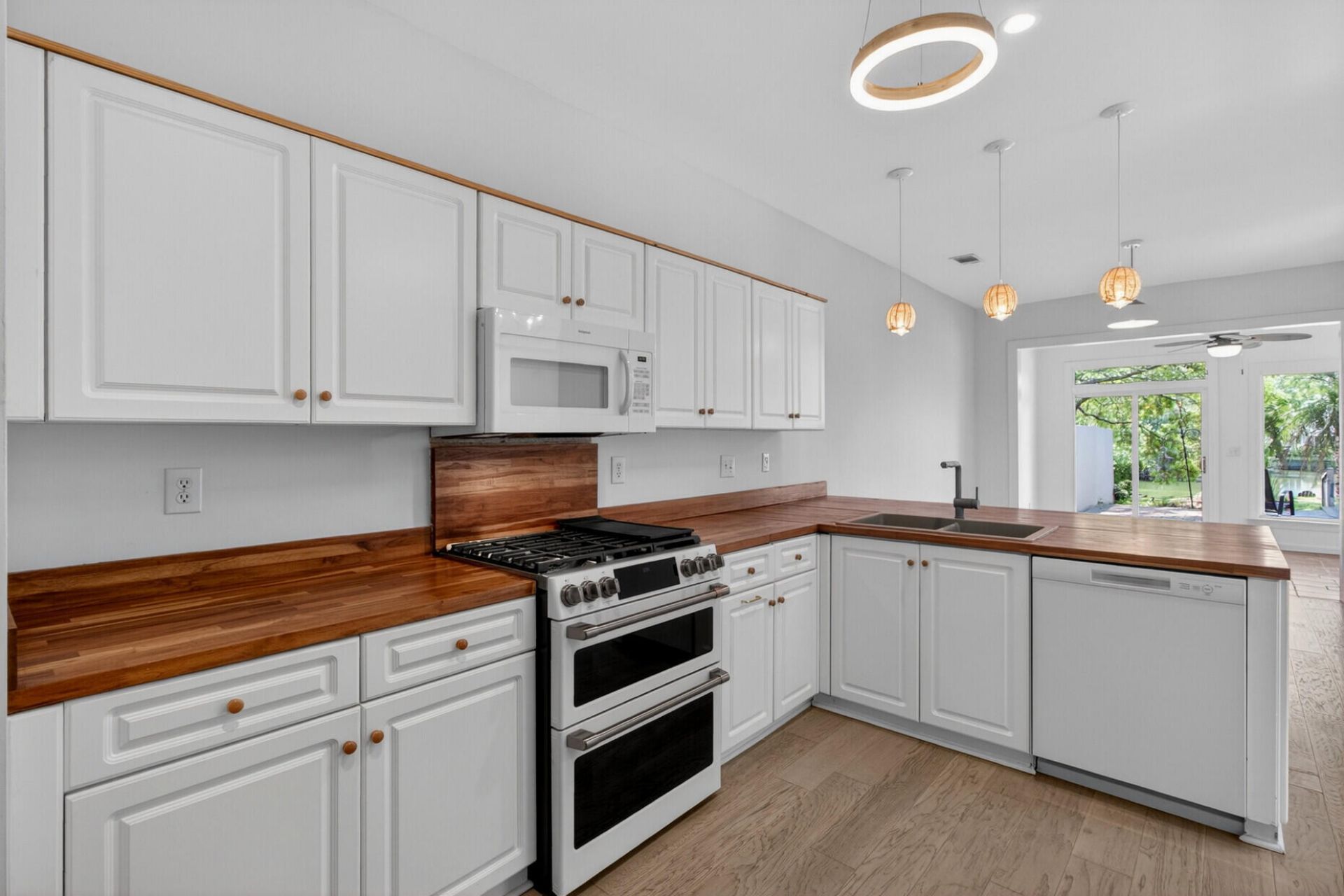 Unbeatable Location! Privacy, serenity, and convenience in the charming 1 level, 3 bedroom, 2.5 bath lakefront home on quiet cul-de-sac. Open floor plan with skylights and tiled light filled sunroom that opens to a scenic deck overlooking Heron Lake with views of the Ravenel bridge, great for peace and quiet or entertaining; Adirondack chairs by the shore to watch the vibrant waterfowl who call Lake Heron their home. The spacious eat in kitchen and dining area has plenty of cabinets and counter space with laundry room off to the side. The family room includes a gas fireplace and vaulted ceiling. Primary bedroom at back of home has expansive views of the lake and includes master bath with soaking tub, walk in shower, walk in closet. The 2 secondary bedrooms and guest bathroomare off the main family room, one bedroom with built in natural wood bookshelves, great for study, studio, playroom, etc. The Village of Heron Lake is a welcoming, highly sought-after community, perfectly located at the foot of the Ravenel Bridge for quick access to downtown or all that Mt. Pleasant has to offer, with a quick car ride to the beaches and Patriots Point, and a short walk or bike ride to the beautiful Mount Pleasant Memorial Waterfront Park and Mount Pleasant Pier. Homes in The Village of Lake Heron don't appear often. Come and find your own little paradise.